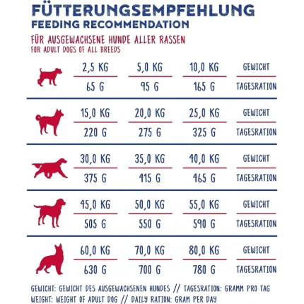 Large breed puppy food, with reduced protein and no wheat (24% protein). With a moderate energy content, it is designed for growing large breed dogs (adult weight over 25 kg) that require a moderate growth rate to avoid potential cartilage and joint problems. Mussel extract ensures the development of cartilage and joints in young dogs. Made in Germany. Protein: 24% Fat: 12%