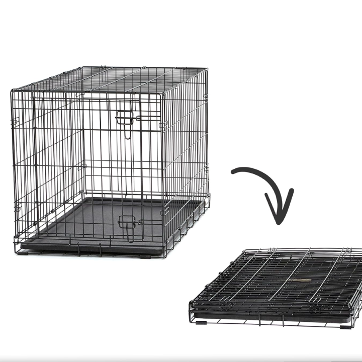 ძაღლის მეტალის გალია. არის ძალიან კომფორტული გამოსაყენებელი.