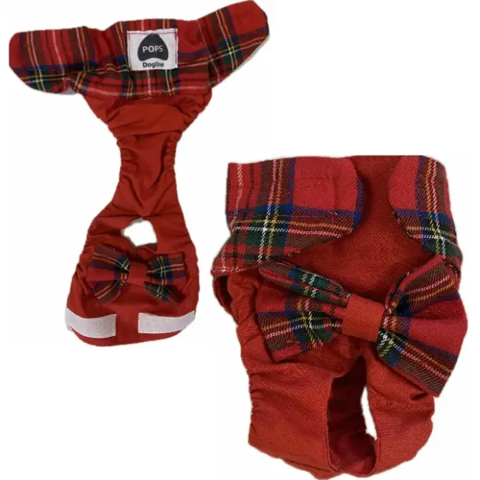 Georgian brand Pops Dogline comfortable and practical panties, designed for your female dog. With a Scottish design, beautiful bow. Designed for S size dogs.