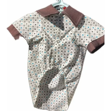 ძაღლის პერანგი ყავისფერი დეტალებით, კომფორტული და რბილი მატერია, რომელიც არ აღიზიანებს ძაღლის კანს. იდეალურია თქვენი ოთხფეხა მეგობრისთვის. დამზადებულია საქართველოში.