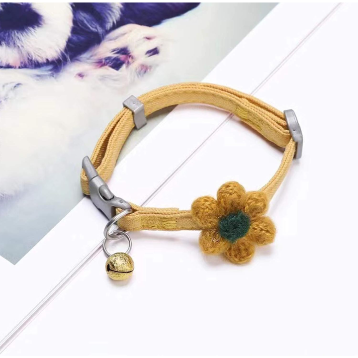 ძაღლის საყელო ყვავილით და ზარით. ყენდება ზომაზე.