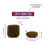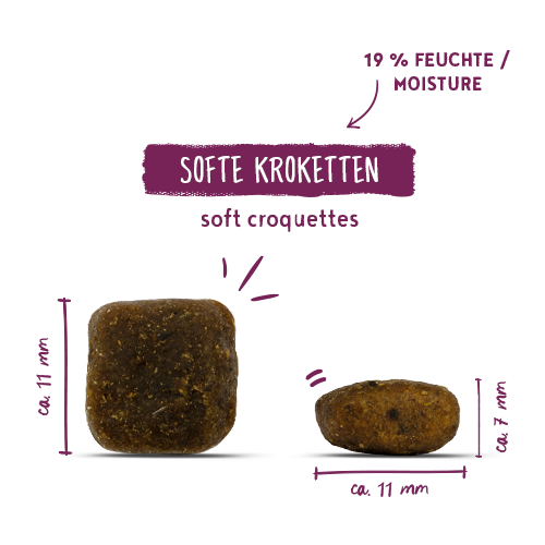 ხალი ზღვის ფრინველი (50%), ტკბილი კარტოფილი (გამომშრალი, 10%), ბარდის ცილა, ტაპიოკა (გამომშრალი), მზესუმზირის ცილა, ბარდა (გამომშრალი), გამომშრალი ჭარხლის რბილობი (შაქრის გარეშე), ცილის ჰიდროლიზატი (ვეგეტარიანული), დიკალციუმის ფოსფატი, ცელულოზა, მწვანილი (გამომშრალი), ცერეცო (გამომშრალი), კალციუმის კარბონატი, საფუარი (გამომშრალი, მათ შორის ბეტა-გლუკანები), ვარდკაჭაჭა (გამომშრალი, 0.3%), ფსილიუმის ქერქი, ქონდროიტინის სულფატი, გლუკოზამინი, იუკა (გამომშრალი).