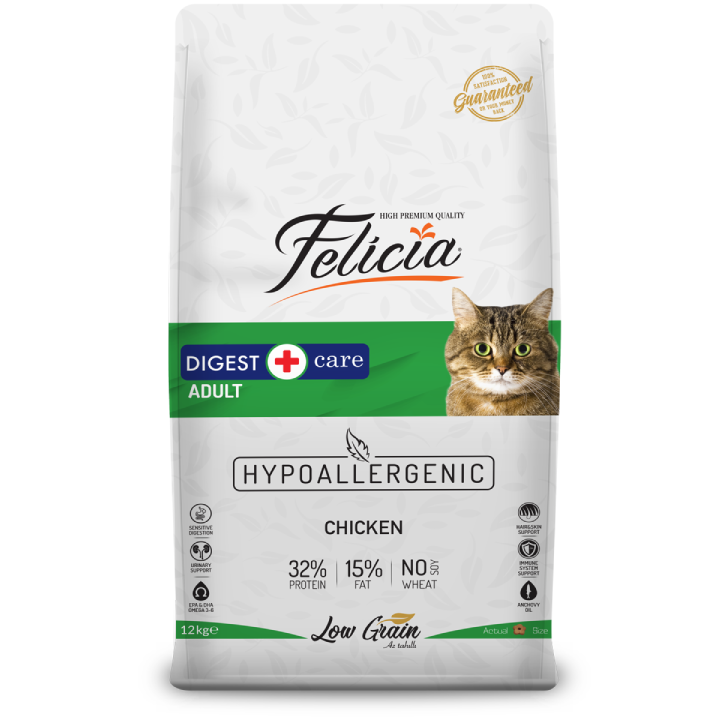 შექმნილია სპეციალურად ზრდასრული და +7 წლის სტერილიზებული კატებისთვის. ის ხელს უწყობს წონის ჭარბი მატებისა და ქვების წარმოქმნის პრევენციას კატებში, რომლებიც ხდებიან შეუწყნარებლები და აქვთ ჭამისადმი მიდრეკილება სტერილიზაციის შემდეგ. ის ხელს უწყობს საშარდე გზების და თირკმელების ჯანმრთელობას რქოვანას ალუბლის და მინერალების ოპტიმალური დონით. მის შემადგენლობაში შემავალ ტაურინის მხარდაჭერასთან ერთად, ის ზრდის ცხოვრების სტანდარტს ჩვენი ზრდასრული და +7 წლის სტერილიზებული კატების სასიცოცხლო ფუნქციების დაცვით. სპეციალურად შექმნილი შინაური ცხოველების საკვების მარცვლები ხელს უწყობს ნადებისა და კბილის ფორმირების შემცირებას, ამავდროულად ხელს უწყობს ცოცხალი, აბრეშუმისებრი და მბზინავი თმის წარმოქმნას ბუნებრივი ომეგა 3 და 6 ცხიმოვანი მჟავების გამო. Felicia®-ს ყველა ფორმულა ჩვენს მეგობრებს სთავაზობს ჯანსაღ და დაბალანსებულ დიეტას უმაღლესი ხარისხის ინგრედიენტების წყალობით ოპტიმალური კვების უზრუნველსაყოფად.